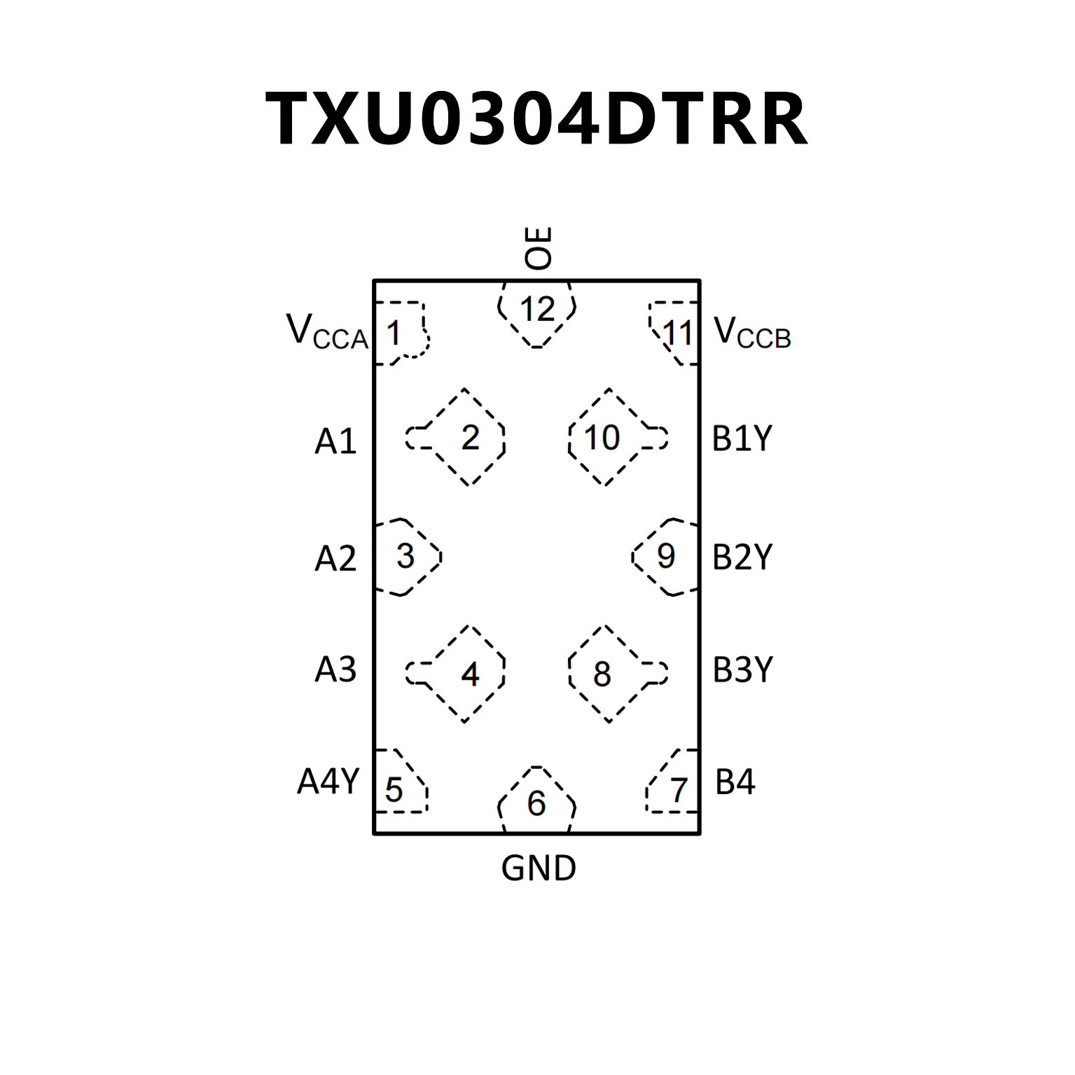 4-Bit Fixed Direction Voltage-Level Translator with Schmitt-Trigger Inputs and 3-State Outputs, P2P TXU0304DTRR.